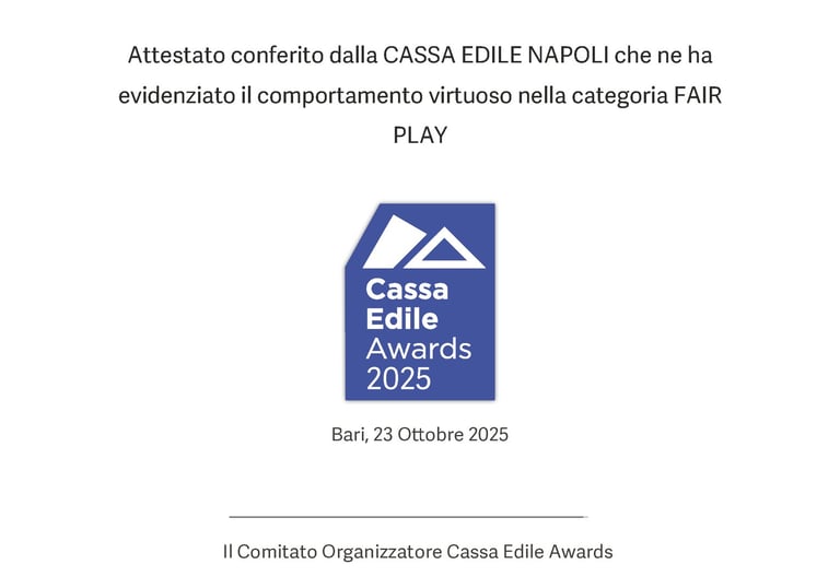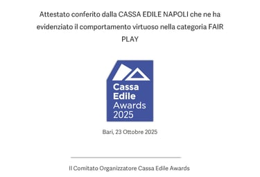 Siamo stati premiati dalla cassa edile per il comportamento virtuoso nella categoria FAIR PLAY